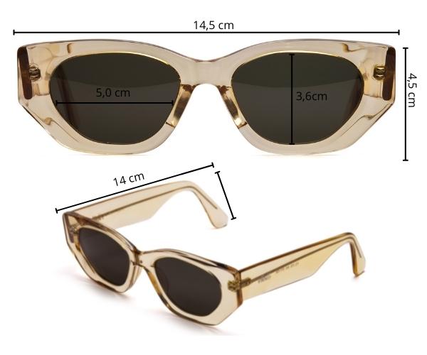 O design é autoral, o traço é firme e o material da armação é o sofisticado acetato italiano. Pra você entender melhor, o acetato que usamos (acetato de celulose) é um material que vem do algodão, por isso é macio no toque, não aperta o rosto, não incomoda e ainda tem bastante flexibilidade. Não é plástico! Não quebra, é hipoalergênico e tem uma durabilidade capaz de atravessar gerações