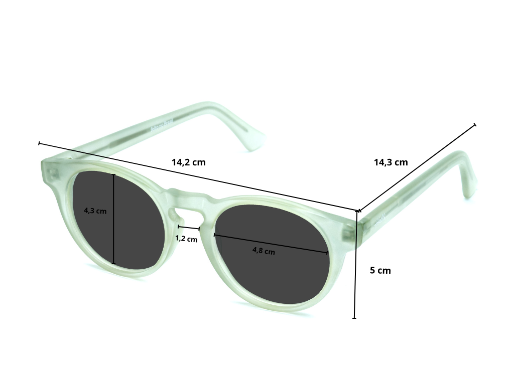 É feito de acetato italiano Mazzucchelli (qualidade de outro nível). Não é plástico é um material extraído do algodão, por isso é super macio no rosto, não aperta e ainda é hipoalergênico. É óculos para atravessar gerações, literalmente
